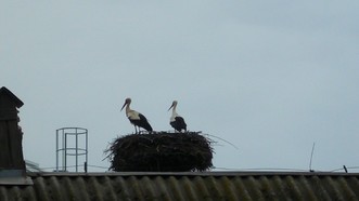 Bociany przyleciały Do gniazda przy mieszalni pasz RSP Wojsław przyleciała para bocianów 17.04.2013