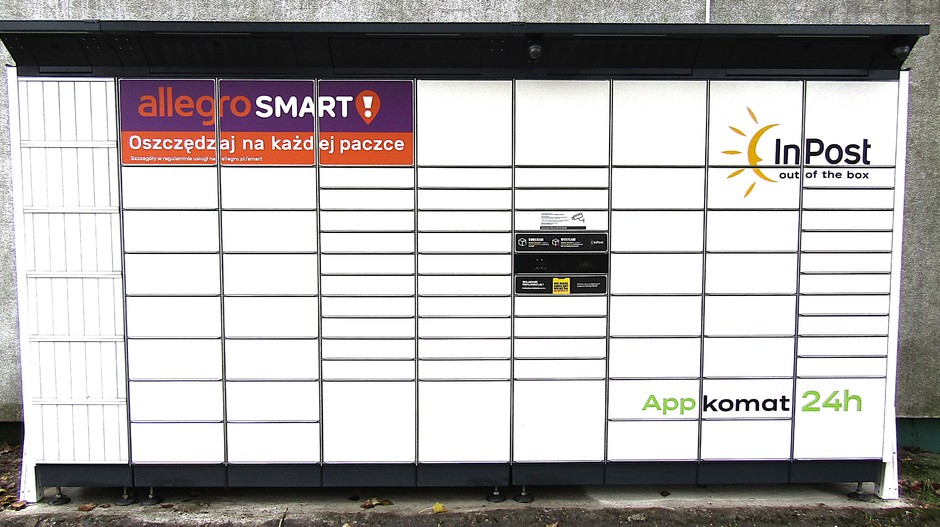 Na parkingu obok sklepu postawiono paczkomat