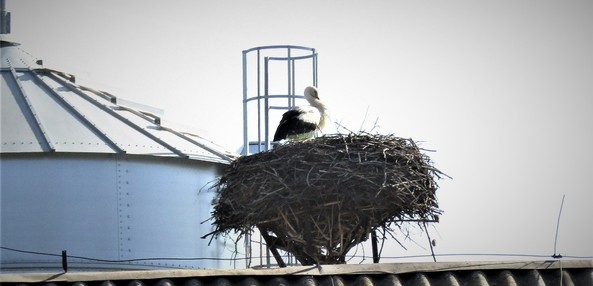 Gniazdo przy mieszalni pasz RSP Wojsław, bocian przyleciał 4.04.2012